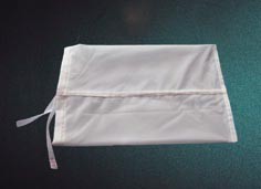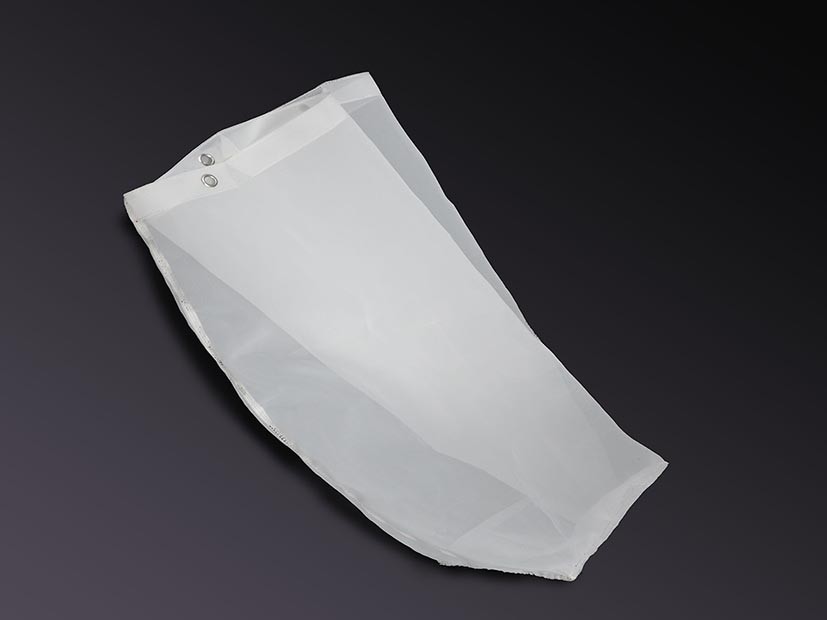 上圖是客戶定做的,過濾袋口部四周裝有吊環(huán),整體呈長方體,客戶使用時四周用鐵勾懸掛起來使用,簡單實用。
